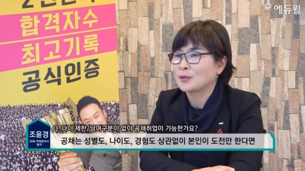 조윤경 씨가 수석으로 공채에 합격할 수 있었던 노하우에 대해서는 “먼저 정보를 찾아보는 게 급선무였는데 에듀윌 취업지원센터에 내가 지원하는 회사 임원분이 나오셔서 기업이 원하는 인재상과 기업 목표를 이야기했다”며 “그 부분을 참고해 자기소개서·면접·PT 발표를 준비했고 좋은 결과를 얻을 수 있었다”고 말했다.