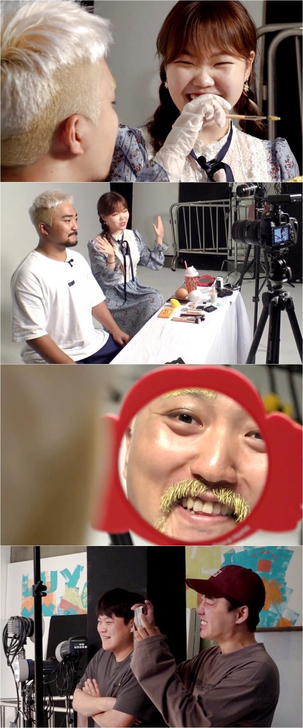 공개된 사진에는 유병재를 보고 웃음이 터진 이수현의 모습이 담겼는데, 거울 속으로 얼핏 보이는 유병재의 수염이 샛노랗게 칠해져 있어 웃음을 자아낸다. 제작진에 따르면 유규선과 이수현의 매니저도 연신 웃음을 터트리며 폭발적인 반응을 보였다고 전해져 궁금증을 더한다.