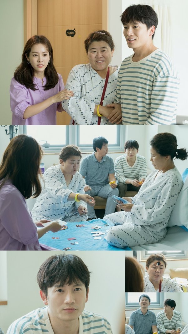 새로운 전환점을 앞두고 공개된 사진은 다시 얽히기 시작한 주혁과 우진의 끈질긴 운명을 예고하며 궁금증을 자극한다. 환자복을 입은 우진 엄마를 사이에 둔 주혁과 우진은 그야말로 당혹감을 감추지 못한다. 주혁의 팔짱까지 낀 ‘차서방’ 앓이 우진 엄마의 해맑은 미소와 달리 두 사람의 표정은 난감 그 자체. 심지어 주혁의 부모님까지 병원에서 맞닥뜨리면서 의도치 않게 과거 사돈들의 상봉이 마련되고 말았다. 화투짝을 이마에 붙이고 열을 올리는 우진 엄마와 주혁 엄마는 고스톱으로 대동단결한 모습. 이를 바라보는 주혁 아빠의 얼굴에도 훈훈한 미소가 어린다. 하지만 이를 지켜보는 주혁은 마음이 아프기만 하다. 사진 속 씁쓸한 표정의 주혁과 우진의 당황스러운 표정이 안타까움을 자아낸다.