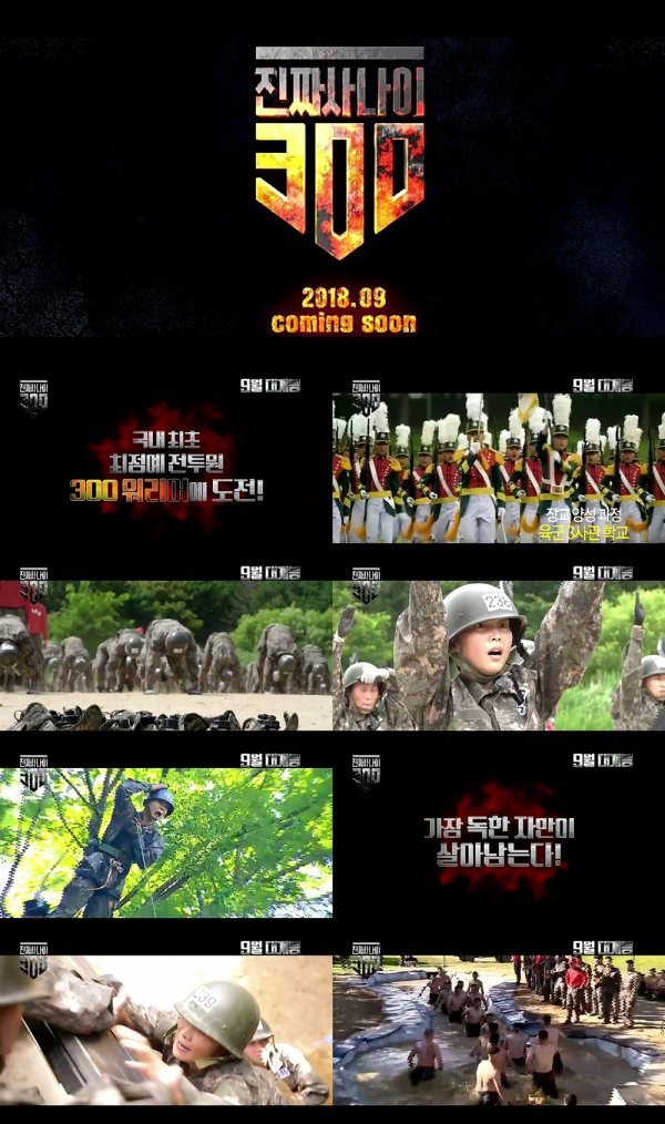 9월 첫 방송 예정인 ‘진짜사나이300’(연출 최민근 장승민) 제작진은 28일 네이버TV ‘진짜사나이300’ 채널을 통해 국내 최초 최정예 전투원 ‘300워리어’ 탄생의 서막을 담은 티저 영상을 공개했다.
