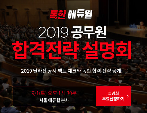 선택과목 관련 더 다양한 의견을 듣거나 상담 받고 싶다면 9월1일 오후 1시30분 서울 구로동에 위치한 에듀윌 본사에서 열리는 ‘2019 공무원 합격전략 설명회’에 참여하면 도움을 받을 수 있다.