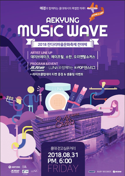 홍대 시대를 연 애경그룹이 31일 오후 6시 홍대 걷고싶은거리 특설무대에서 ‘애경뮤직웨이브’(사진)를 연다.