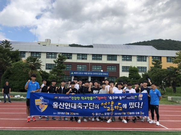한편 울산은 ‘건강한 학교 캠페인’ 캠페인의 일환으로 지속적인 축구 클리닉과 진로 강의 캠페인을 실시하고 있으며, ‘반갑다 축구야’, 가족과 함께 하는 ‘호랑이 가족 운동회’ 등 다양한 풀뿌리 축구사업을 진행해 지역밀착 활동을 이어나가고 있다.
