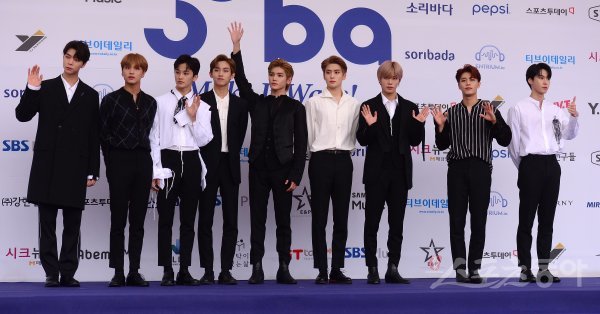 30일 서울 송파구 올림픽공원 체조경기장에서 열린 ‘2018 소리바다 베스트 케이뮤직 어워즈’에서 NCT 127이 포토타임을 갖고 있다.