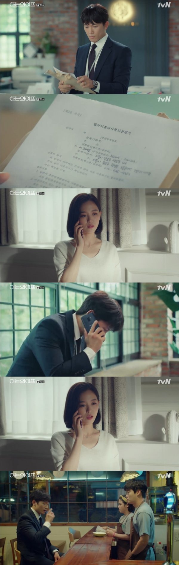 29일 방송된 tvN 수목드라마 ‘아는 와이프’(극본 양희승 연출 이상엽) 10회에서는 이혼서류를 전달받은 차주혁(지성)의 모습이 그려졌다.