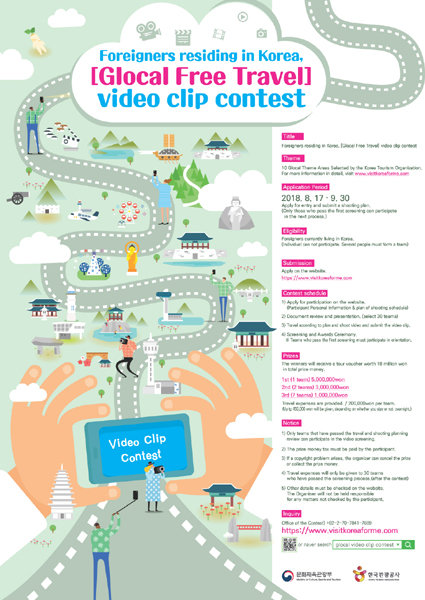 문화체육관광부(이하 문체부)와 한국관광공사는 주한 외국인을 대상으로 ‘글로컬 자유여행 영상 공모전’을 진행한다.