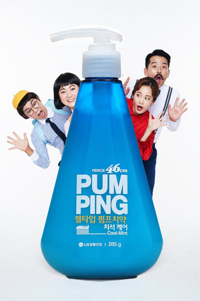 LG생활건강이 페리오 펌핑치약 새 모델로 개그맨 김준호, 김지민, 박나래, 홍인규(사진)를 발탁했다. 가족을 테마로 짜지 않고 톡 눌러 쓰는 펌핑치약의 편리함을 소개한다. 새 CF에서 ‘치약은 안 나오고 짜증만 나올 때’, ‘뚜껑 열린 치약에 내 뚜껑도 열릴 때’의 테마를 시트콤 형식으로 소개하는 등 치약 소비자가 느낀 일상 속 불편함을 재미있게 담아냈다.