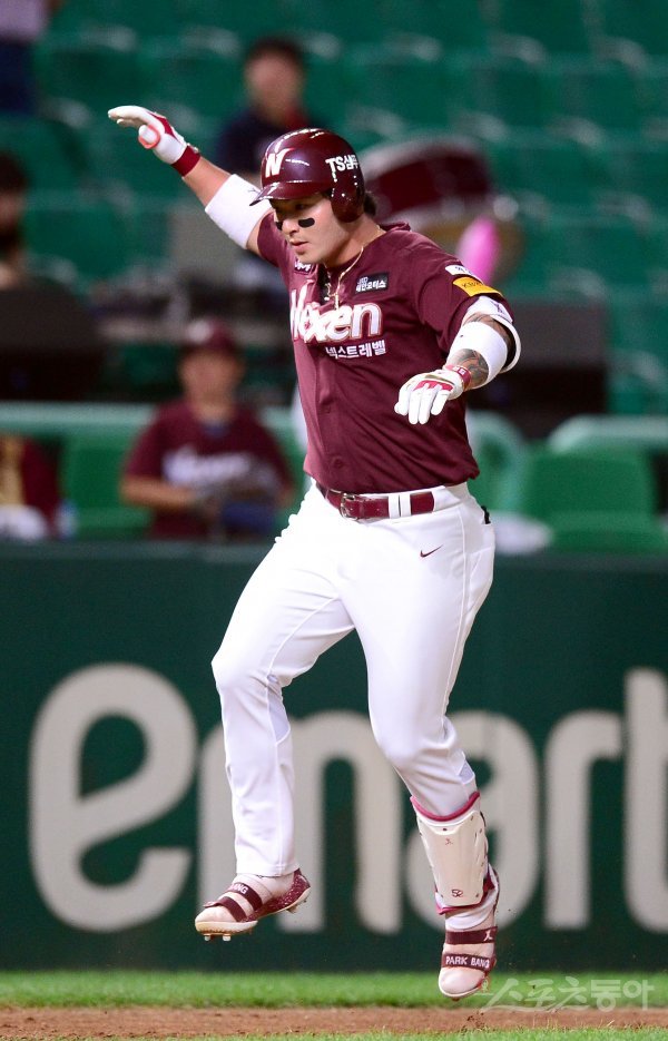 3회초 2사 1루 넥센 박병호가 중월 투런 홈런을 날린 후 그라운드를 돌고 있다.