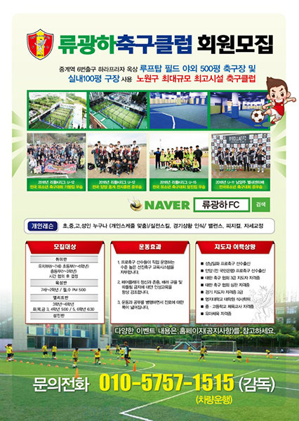 학부모들의 입소문을 타고 날로 번창하고 있는 축구교실이 있다. K리그 성남 일화(현 성남FC)에 입단해 FC안양에서 현역 생활을 마친 류광하(34) 단장이 운영하고 있는 ‘류광하FC‘다. 서울시 강북구 우이초등학교 코치로 지도자에 입문한 류 단장은 4년째 자신의 이름을 딴 축구클럽을 이끌고 있다.