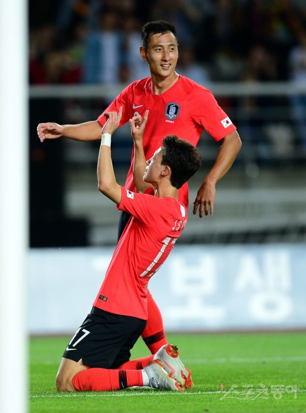 한국 이재성이 골을 넣은 뒤 환호하고 있다.