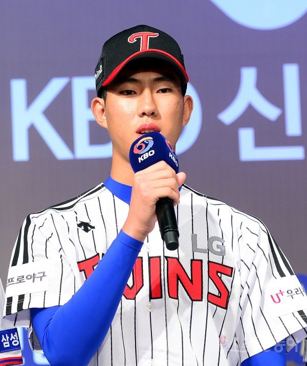 10일 서울 중구 웨스틴조선호텔에서 ‘2019 KBO 신인 드래프트’가 열렸다. 드래프트 1라운드 5순위로 LG에 지명된 이상영이 소감을 밝히고 있다.