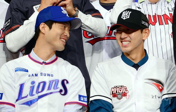 드래프트 1라운드 1, 2순위에 지명된 이대은, 이학주(왼쪽)가 미소를 짓고 있다.