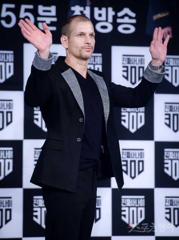 방송인 매튜 다우마가 18일 서울 마포구 상암동 MBC에서 진행된 MBC 예능 ‘진짜사나이300’ 제작발표회에서 포즈를 취하고 있다.