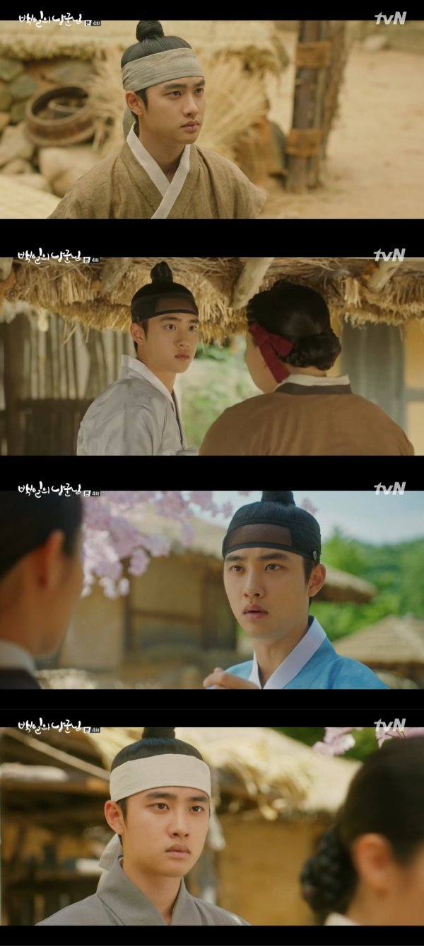 도경수는 tvN 월화드라마 ‘백일의 낭군님(극본 노지설, 연출 이종재, 제작 에이스토리)’에서 살수의 공격을 받아 기억을 잃고 왕세자에서 ‘원득’으로 전락한 ‘이율’을 맡아 열연을 펼치고 있다.