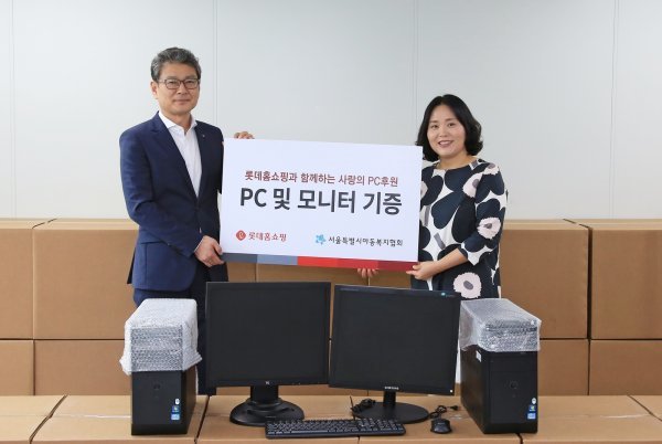 롯데홈쇼핑이 18일 서울 마포구 서울시아동복지협회에서 서울시아동복지협회와 구세군자선냄비본부 등에 1000여 대의 중고 PC를 기증(사진)했다.