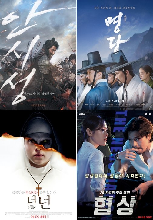 20일 영화진흥위원회 영화관입장권 통합전산망에 따르면 전날 1위는 신작 ‘안시성’이었다. 1119개의 스크린을 통해 12만명을 동원해 1위를 차지했다. 2위는 ‘명당’으로 10만명을 기록했다. ‘명당’이 확보한 스크린은 1067개였다. 3위는 또 다른 신작 ‘협상’이 아닌 ‘더 넌’이었다. ‘더 넌’은 9만명의 선택을 받았다. 4위로 출발한 ‘협상’은 8만명이 관람했다. 개봉일에 ‘협상’이 배정받은 스크린은 898개였다.