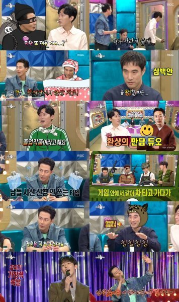 조인성과 배성우의 ‘톰과 제리’ 케미는 이날 방송에서도 여전했다. 조인성은 배성우에 대해 “이 형은 촬영장에서 항상 잔다”며 “전화도 잘 안 받으면서 SNS 메시지는 읽는다. 뭘 하는지 촬영장에 와선 항상 자더라”고 밝혀 폭소케 했다. 조인성과 배성우의 절친 MC 차태현 역시 “‘안시성’에서만 잔 게 아니다. 드라마 현장에서도 자고, 원래 형 밥 먹고 잘 잔다”고 거들어 더욱 박장대소케 했다.