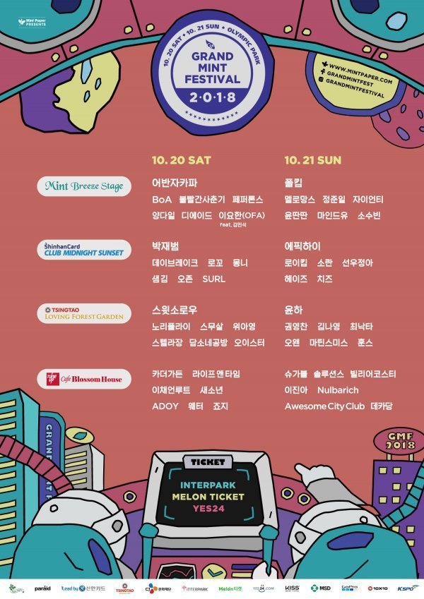 올해 야외 페스티벌 시즌의 마지막을 장식할 그랜드 민트 페스티벌 2018은 오는 10월 20일 토요일, 21일 일요일 올림픽 공원에서의 개최까지 30여일을 앞둔 가운데 다양한 방면에 걸쳐 명성에 걸맞은 만반의 준비를 갖추고 있다는 후문이다. 보다 자세한 정보는 민트페이퍼와 그랜드 민트 페스티벌의 홈페이지 및 SNS에서, 티켓은 인터파크와 멜론티켓, 예스24에서 확인할 수 있다.