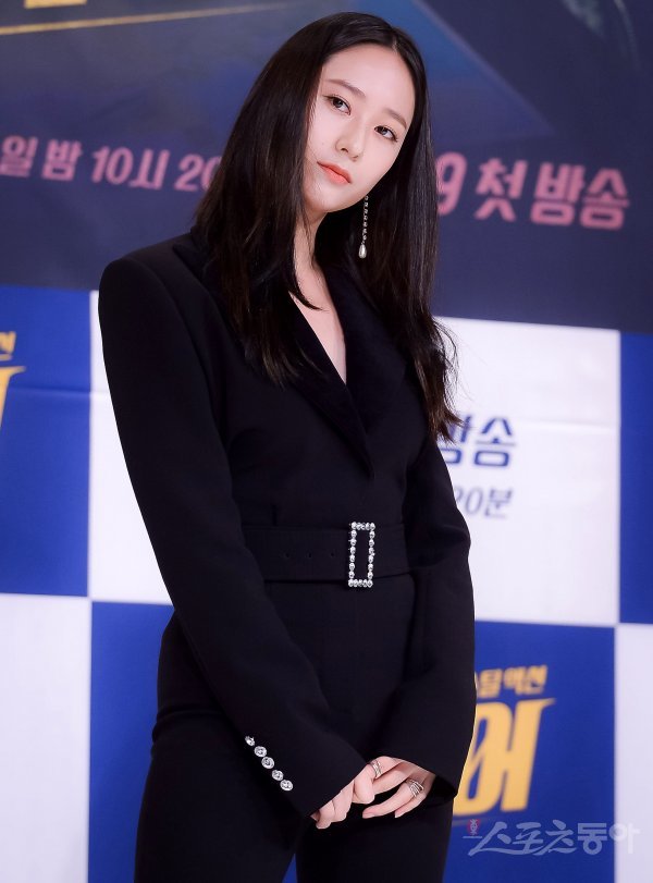 배우 정수정이 20일 서울 영등포 타임스퀘어 내 아모리스 홀에서 열린 OCN 새 토일 오리지널 ‘플레이어’ 제작발표회에 참석해 포즈를 취하고 있다.