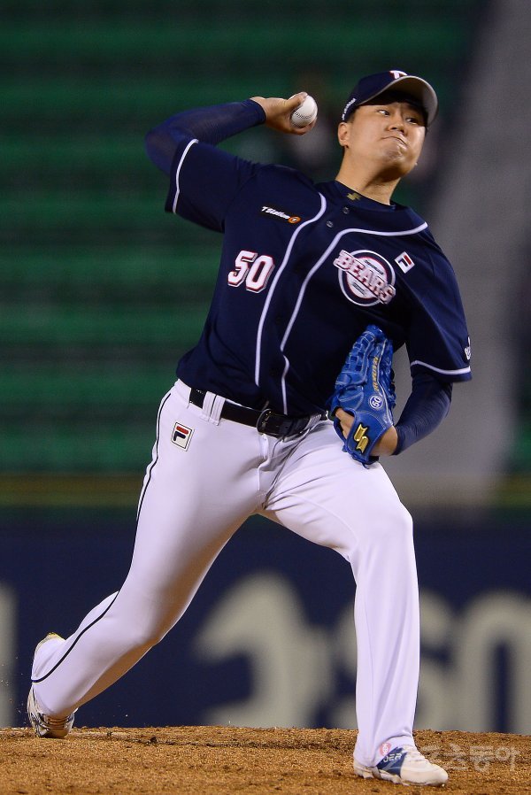 1회말 두산 선발 이영하가 힘차게 공을 던지고 있다.