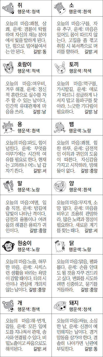 ■ 오늘의 운세|박경호의 운수 좋은 날