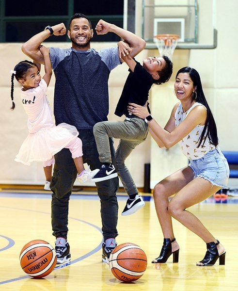 남자프로농구 KCC 베테랑 가드 전태풍(왼쪽 두 번째)은 어린시절 소꿉친구였던 미나 터너(맨 오른쪽) 씨와 결혼해 가정을 꾸렸다. 전태풍이 KCC체육관에서 가족들과 함께 즐거운 시간을 보내고 있다. 용인|김민성 기자 marineboy@donga.com