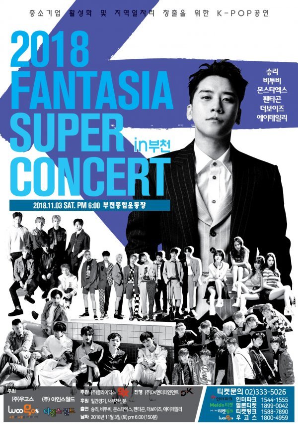 ‘2018 판타지아 슈퍼콘서트 in 부천’에는 가수 승리를 비롯해 비투비, 몬스타엑스, 펜타곤, 더보이즈, 에이데일리가 출연해 화려한 무대를 선사할 예정이다.