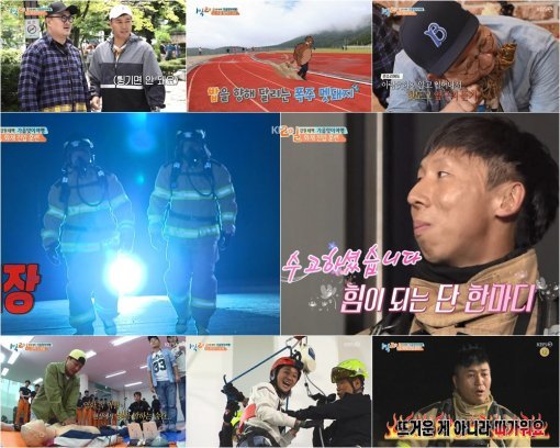 이후 멤버들은 국민의 안전을 지키는 일일 구급대원 체험에 나섰다. 영화 <신과 함께> 주인공 김자홍이 된 듯 심폐소생술-완강기 사용-화재진압 등 다양한 훈련을 받은 것. 차태현은 쓰러진 사람의 생명을 살리는 심폐소생술 교육에서 실제 자신이 분한 김자홍 캐릭터가 환생한 듯 완벽에 가까운 응급처치로 당당하게 심폐소생술 평가 1위를 차지했다. 또한 정준영은 완강기 교육에서 정석에 가까운 낙하실력으로 당당히 평가 1위를 기록해 박수갈채를 이끌어냈다. 특히 화재진압실습에서는 소방관들의 고충을 몸소 경험했고 김준호-김종민이 실제 소방관들의 작업복-장비를 착용한 채 불길 잡기에 나섰다. 1000도 가까이 되는 불길 앞에 두 사람은 “뜨거운 게 아니고 따가워요”, “영화에서 불길에 뛰어든다는 거는 말이 안 돼요”고 밝혔고 이에도 “힘들지 않다”고 입을 모으는 소방관들의 모습은 안방극장에 잔잔한 감동을 선사했다. 더욱이 멤버들과 함께 교육에 나선 신입 구급대원들은 인명을 구하고 싶은 마음으로 직업에 지원했다는 진실된 속내를 밝혀 묵직한 감동으로 시청자들의 가슴까지 뜨겁게 만들었다.