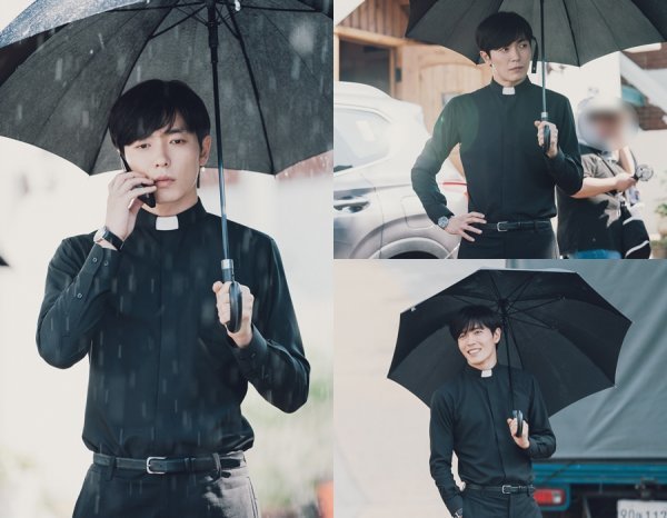 공개된 사진 속 김재욱의 모습은 드라마 현장인지 화보 현장인지 가늠할 수 없을 정도다. 그만큼 블랙 컬러의 단정한 사제복에 우산 하나만으로 독보적인 비주얼을 선보이고 있다. 특유의 깊이 있는 눈빛과 시크한 표정은 무수히 쏟아지는 빗방울과 어우러져 애잔한 분위기마저 자아낸다. 보는 것만으로도 설렘주의보를 발동시키는 김재욱의 매력은 보는 이들의 마음을 사로잡고 있다.
