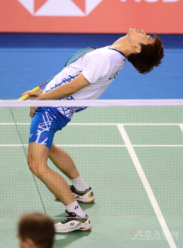 26일 서울 송파구 SK핸드볼경기장에서 열린 2018 빅터 코리아오픈 배드민턴 월드투어 본선 32강전에서 이용대(요넥스)가 공격에 실패한 후 아쉬워하고 있다.