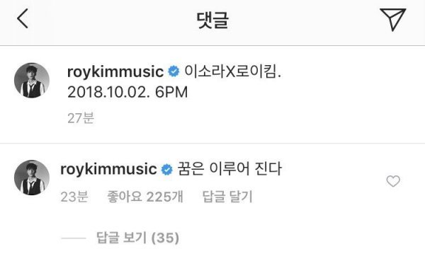 또한 댓글로 "이소라X로이킴 2018. 10. 02. 6PM" "꿈은 이루어 진다"라고 이소라와의 콜라보에 대한 기대감을 드러내기도 했다.