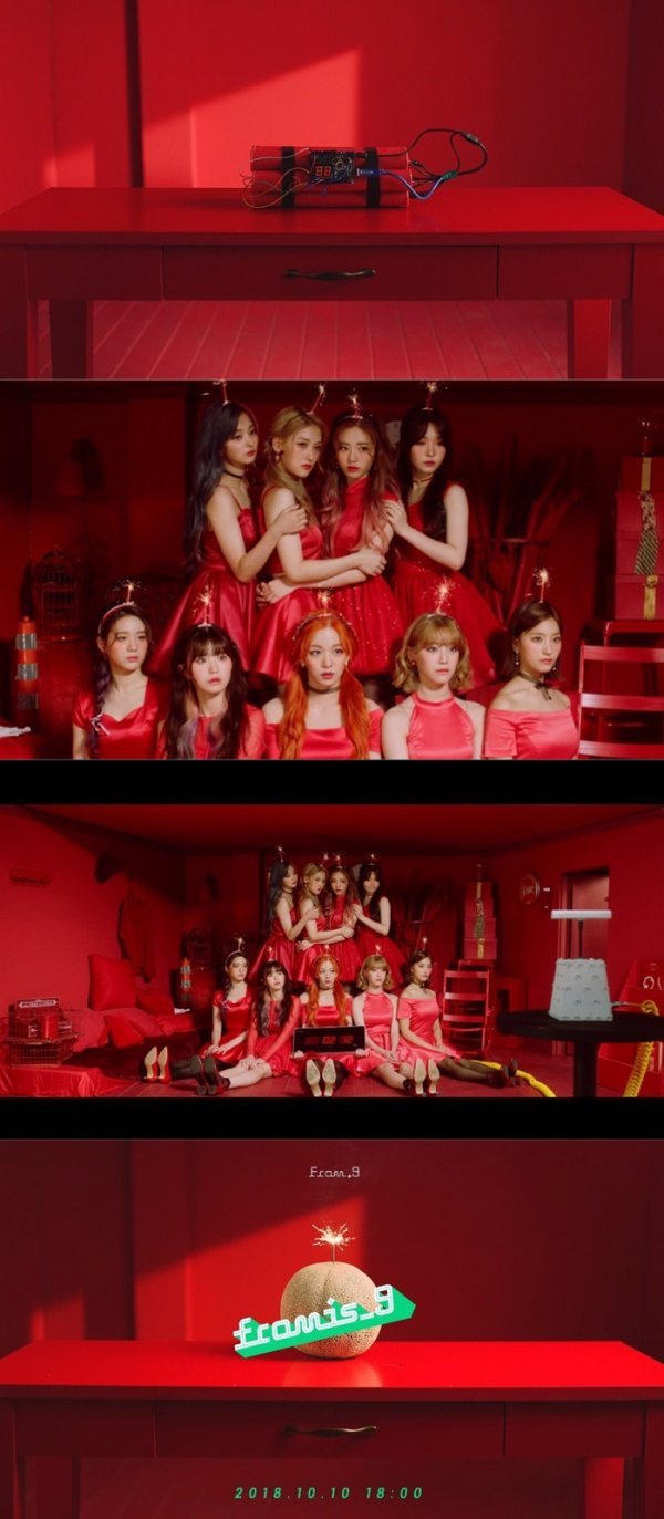 멤버들이 착용한 머리띠에도 당장 터질 듯한 폭탄 심지가 달려 있으며, 책상 위에 놓인 멜론 폭탄이 폭발하는 장면과 함께 이번 영상은 마무리된다. 더불어 마지막 장면에 ‘2018.10.10. 18:00’이라는 문구를 삽입하며 컴백일시를 공개했다.