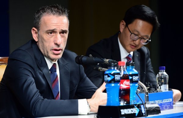 1일 서울 신문로 축구회관에서 한국 축구대표팀 벤투 감독이 10월 A매치 2연전에 나설 25인의 대표팀 명단을 발표하고 있다.