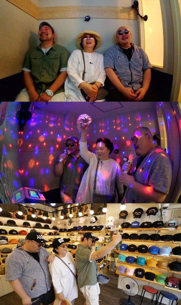 이날 양희경과 두 아들은 젊은이들의 핫플레이스 ‘홍대 거리’ 나들이에 나섰다. 작은 자동차에 옹기종기 모여 타는 것부터 난관이었던 세 모자는 특유의 긍정적이고 즐거운 마인드로 시종일관 웃음을 잃지 않았다. 그렇게 홍대 이곳 저곳을 누비던 삼덩이 모자가 도착한 곳이 코인노래방이다.