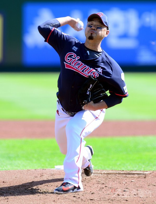 롯데 선발투수 송승준이 힘차게 볼을 던지고 있다.
