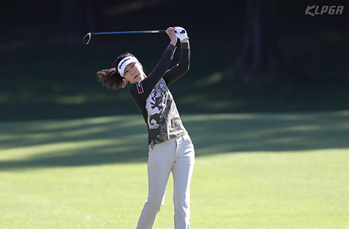 21년간의 프로 생활을 마무리하는 강수연이 4일 경기도 여주시 블루헤런 골프클럽에서 열린 KLPGA 투어 하이트진로 챔피언십 1라운드를 소화하고 있다. 사진제공|KLPGA
