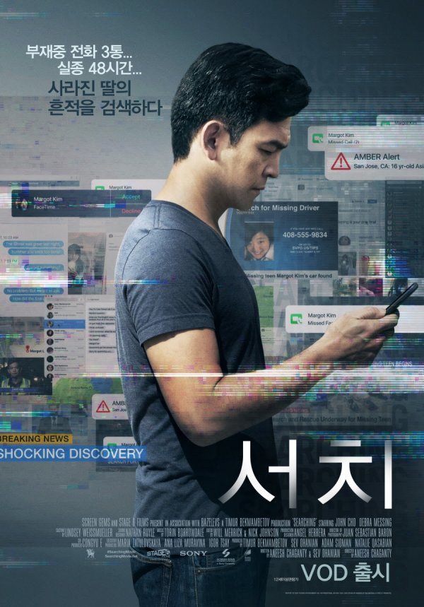 영화 ‘서치’는 부재중 전화 3통만을 남기고 사라진 딸, 그녀의 SNS에 남겨진 흔적을 통해 행방을 찾기 시작한 아빠가 발견한 뜻밖의 진실을 그린 추적스릴러다. 존 조의 강렬한 열연이 돋보이는 영화 ‘서치’는 IPTV 3사 KT ollehTV, SK BTV, LG U+TV 및 홈초이스(Cable TV VOD), Skylife를 통해서 VOD로 만나 볼 수 있으며, 10월 10일부터 네이버N스토어, 카카오페이지, ollehTV모바일, 옥수수, 비디오포털, POOQ, 티빙 등 다양한 OTT 플랫폼을 통해 VOD로 만나 볼 수 있다.