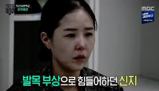 이날 신지는 유격체조를 하는 동기들 뒤에서 따로 훈련을 받으며 눈물을 보였다. 교관은 "발목에 무리가 가지 않는 훈련 동작 두 가지를 알려 주겠다"라고 말했고, 신지는 "꼭 훈련 받고 싶다"며 의지를 보였다.