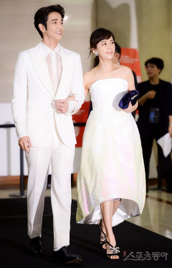 대만 배우 류이호와 진의함(오른쪽)이 5일 부산 해운대구 해운대 그랜드 호텔에서 열린 ‘마리끌레르 아시아 스타 어워즈’에 참석하기 위해 입장하고 있다.