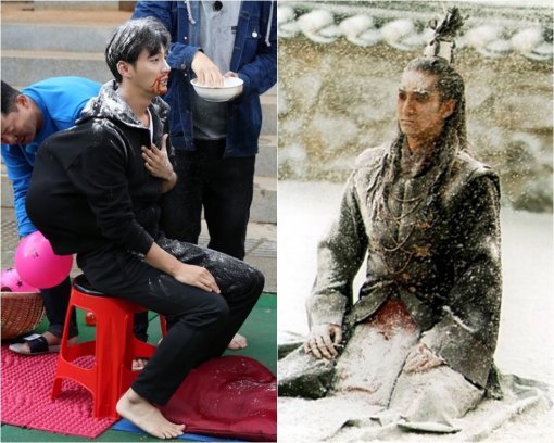 ‘1박 2일’ 윤동구가 머리에 밀가루 폭탄을 맞은 채 영화 ‘은행나무 침대’ 속 황장군과 100% 싱크로율을 자랑하는 윤장군으로 변신한다.