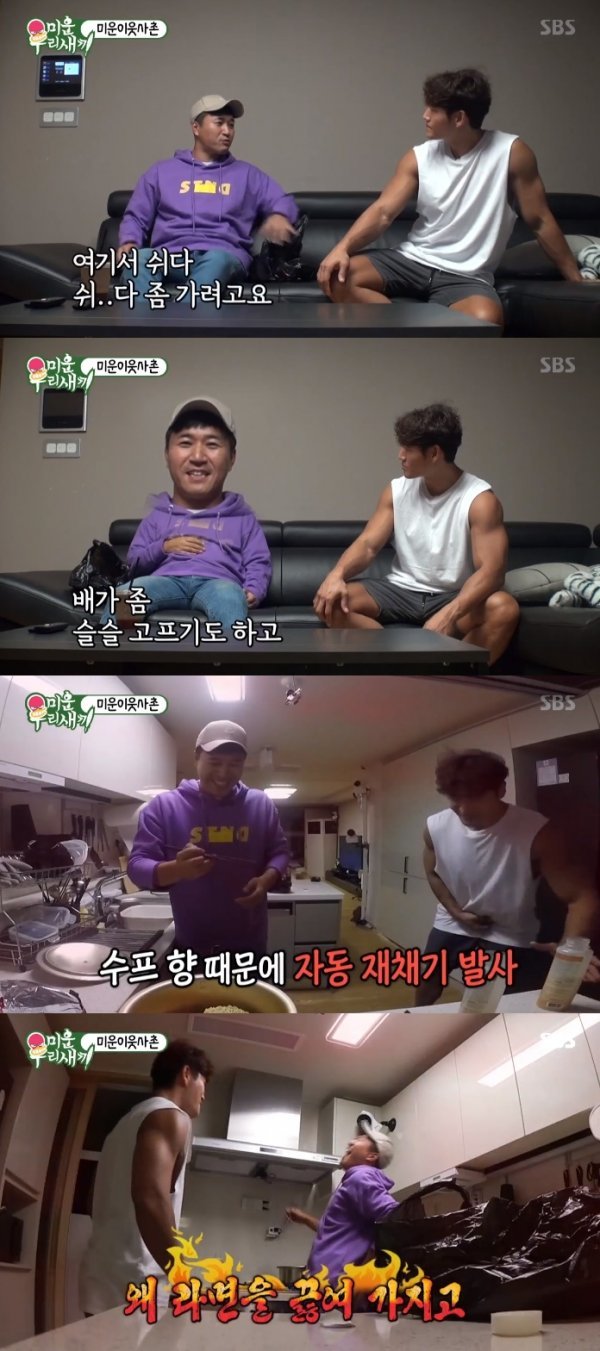 7일 밤 방송된 SBS ‘미운우리새끼’에서는 집에서 홀로 쉬고 있는 김종국의 모습이 전파를 탔다. 이후 김종국의 평화로운 휴식은 이내 혼란에 빠졌다. 이웃사촌인 김종민이 깜짝 등장한 것.