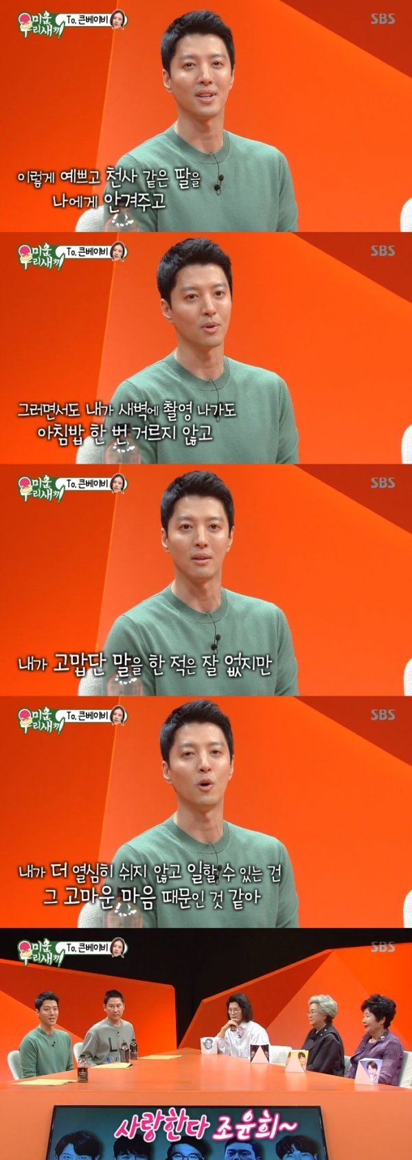이후 그는 “내가 고맙단 말은 한 적이 없지만 그 마음을 알아 달라”며 마지막에는 “사랑한다”는 말을 건넸다.