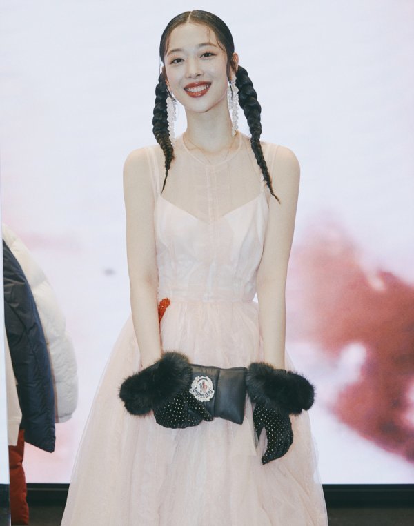 배우 설리의 근황이 포착됐다. 상큼한 양갈래 헤어 스타일과 밝은 미소가 눈길을 끈다.