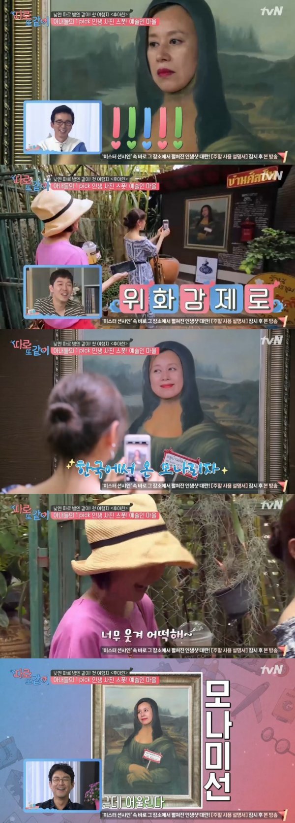 ‘아트 빌리지’를 구경하던 중 ‘모나리자’가 될 수 있는(?) 포토월이 있어 박미선은 얼굴을 가만히 대보았다. 이에 심이영은 “정말 재밌다”라고 말했다.