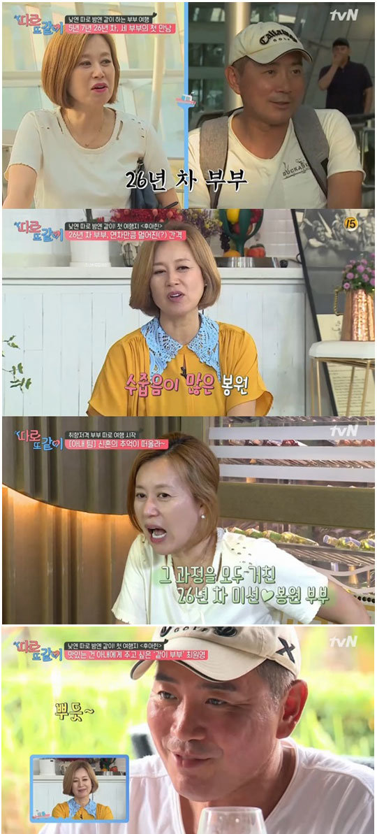 14일 방송된 tvN ‘따로 또 같이’에서는 태국 후아힌으로 여행을 떠난 박미선-이봉원, 심이영-최원영, 강성연-김가온 부부의 모습이 담겼다.