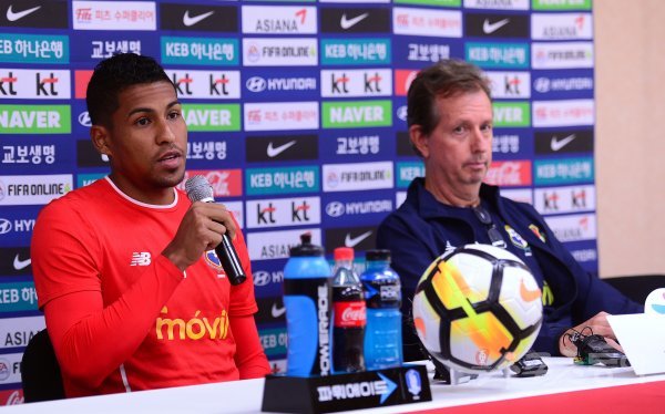 훈련 전 공식 기자회견에서 파나마 리부엘 카마고가 취재진의 질문에 대답하고 있다.