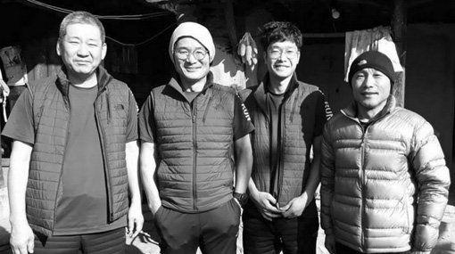 네팔 히말라야 등반 중 사고로 사망한 원정대의 마지막 모습. 왼쪽부터 임일진 감독, 김창호 대장, 이재훈 대원, 유영직 대원. 사진출처|카트만두포스트 캡처