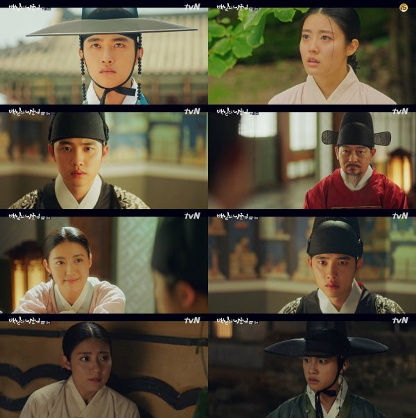 작별 인사도 하지 못한 채 헤어진 원득(도경수)과 홍심(남지현). 아직 기억이 돌아오지 않은 원득은 “궁으로 가셔야 합니다. 세자빈마마께서 기다리고 계십니다. 저하의 아이를 회임한 채로 말입니다”라는 김차언(조성하)의 말에 큰 충격에 빠졌다. 궁에서는 서원대군(지민혁)의 세자 책봉식이 시작된 가운데, “서원대군은 국본이 되실 수 없습니다. 세자저하께서 살아계시니까요”라며 나타난 김차언과 함께 세자 이율(도경수)이 왕(조한철)과 대신들 앞에 모습을 드러냈다. 책봉식을 막는 것이 우선이었던 김차언이 율을 궁으로 귀환하게 만든 것.