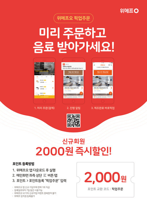 위메프는 온오프라인연결(O2O) 애플리케이션 서비스 ‘위메프오’를 통해 근거리 매장의 음료나 음식을 주문하고 픽업할 수 있는 ‘픽업주문’ 서비스를 공개했다. 위치기반 기술을 활용해 제휴 매장을 찾아 주문 제품을 선택하고 미리 설정한 카드를 통해 결제를 할 수 있다. 픽업주문 서비스는 위메프 직영 W카페 및 일부 제휴 매장에서 시범서비스 중이며, 이달 중 제휴 매장 50여 곳에서 사용 가능하다. 위메프는 위메프오 픽업주문 제휴를 커피전문점에 국한하지 않고 배달 및 포장 주문이 많은 음식점 등으로 확대할 계획이다.