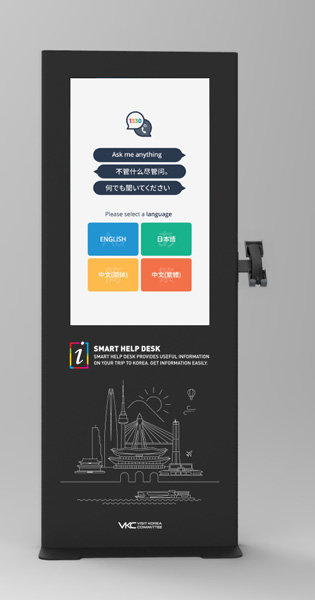 ‘스마트 헬프 데스크’는 주요 관광지와 축제 소개부터 쇼핑, 교통, 맛집 안내, 응급상황 대처 관련 방법 등 외국인 관광객에게 필요한 정보를 4개 국어(영어, 일본어, 중국어 간체/번체)로 제공한다.